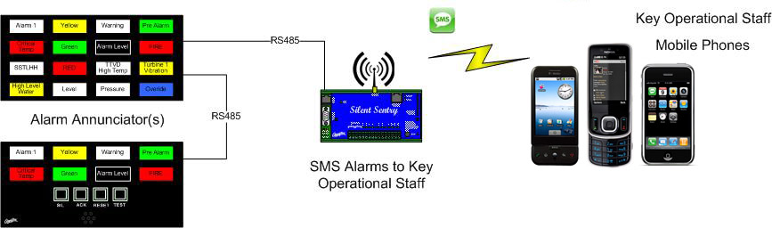 Getting alarms to the right people at the right time can sometimes be a difficult exercise. Management, Supervisors and Engineers alike often need to be made aware of certain alarms that are triggered, be it whether they are on-site or off-site. The Short Message Service SMS (or Text Messages) from the GSM network provides a dynamic and efficient tool to inform personnel of certain alarm conditions at any time.